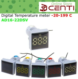 Digital Temperature Pilot Lamp AD16 22DST Square AC -20 - 199 C Kotak Pengukur Temperatur Suhu Celcius Dengan Indikator LED 220v